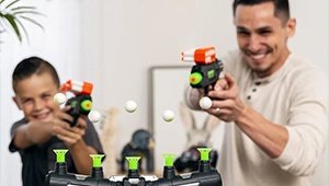 Παράγγειλα αυτό το παιχνίδι ως δώρο γενεθλίων για τον ανιψιό μου και το έχει λατρέψει. Ένα ενδιαφέρον πράγμα είναι ότι ο μπαμπάς του έπαιξε με αυτό και διασκέδασε εξίσου με τον ανιψιό μου! Μου άρεσε ιδιαίτερα το γεγονός ότι τα βελάκια και οι μπάλες είναι μαλακά. Είναι κάτι το διαφορετικό και εγγυημένο